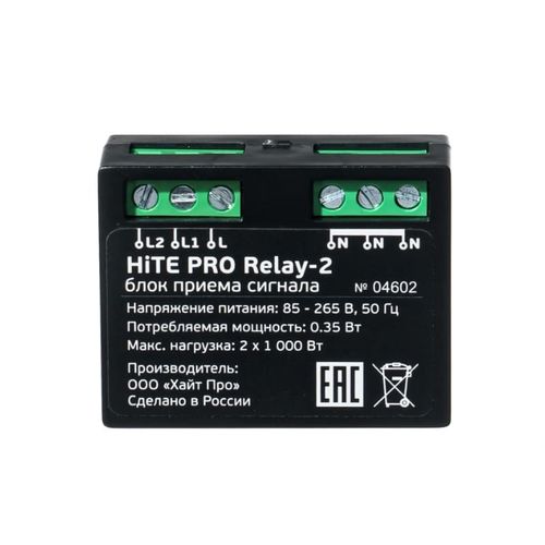 Компактный двухканальный блок радиореле Relay-2 подключается к светильнику или другому электроприбору, которым нужно управлять с помощью передатчиков или сервера умного дома HiTE PRO. Получая от них сигнал блок Relay-2 замыкает/размыкает электрическую цепь.