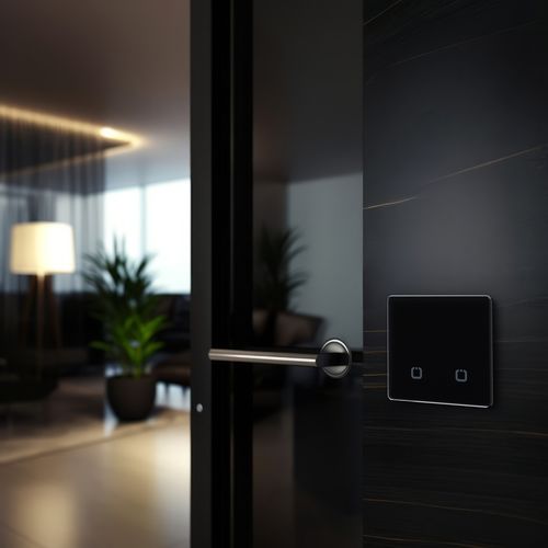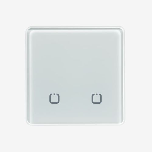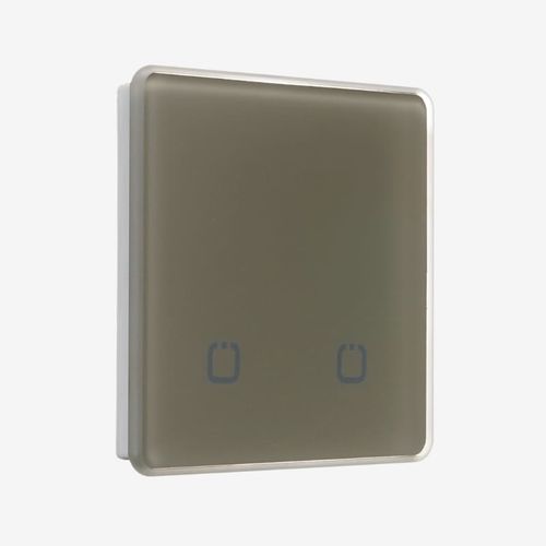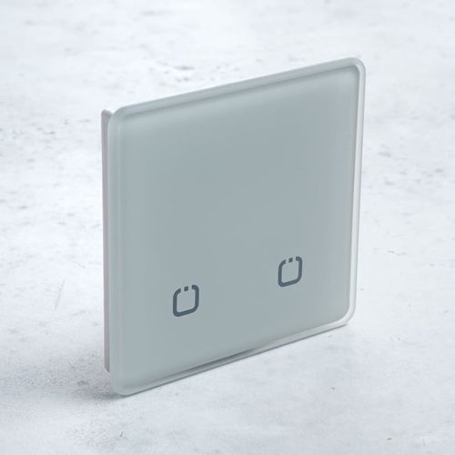 Сенсорный двухканальный беспроводной выключатель. Выполнен из закаленного стекла в лаконичном современном дизайне. При нажатии издает звук. Работа от одной батарейки более 7 лет. Частота 868 МГц, на которой работает выключатель, позволяет управлять освещением на расстоянии до 250 м. Представлен в 11 цветах: алюминиевый, бежевый, графит, светло-коричневый, светло-серый, серо-голубой, серый, слоновая кость, темно-коричневый, черный, белый. Для работы обязательно необходим блок управления. Радиовыключатель является передатчиком, который передает сигнал блоку управления на замыкание и размыкание электрической цепи.