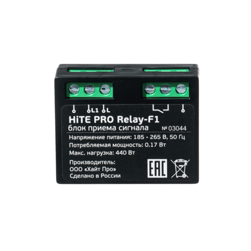 Компактный одноканальный блок радиореле Relay-F1 подключается в разрыв фазы к существующему обычному выключателю и позволяет добавить к нему беспроводное управление. Функционал существующего обычного выключателя можно сохранить благодаря двум специальным выходам в блоке.