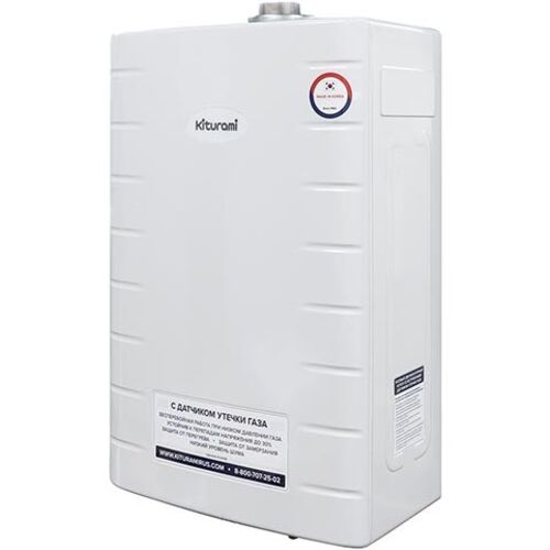 Настенный газовый двухконтурный котёл Kiturami World Alpha - 10 с принудительным дымоудолением поставляется в комплекте с выносным пультом управления в котором встроен комнатный термостат для системы отопления. Уникальная компактная компановка котла с наличием турбо дымохода позволяет разместить его в любом помещении вашего дома. Наличие второго контура ГВС реализовано путём установки в расширительный бак спиралевидного теплообменника, что позволяет получать горячую воду в большом объёме и создать запас горячей воды.