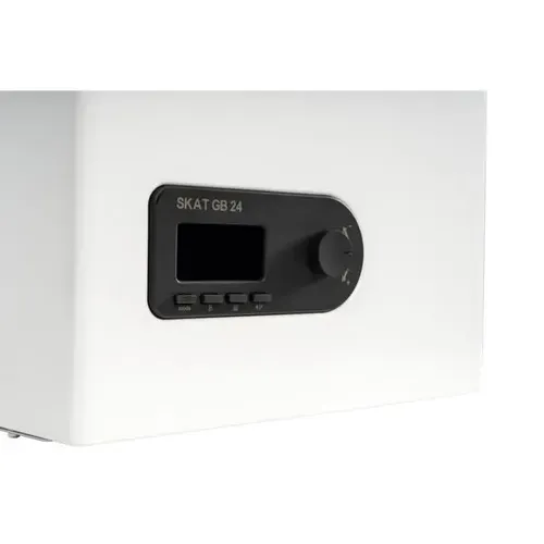 SKAT GB – газовый котел с закрытой камерой сгорания в двухконтурном исполнении для отопления и горячего водоснабжения. Компактный стильный корпус и небольшой вес позволяют легко монтировать его в любом помещении на удобной стене. Газовый котел SKAT оснащен многоуровневой системой защиты, а также умной автоматикой.